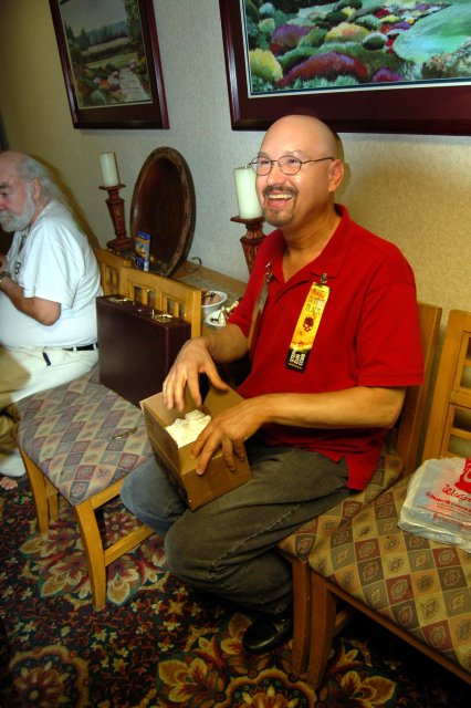 Stephen opening his parcel.