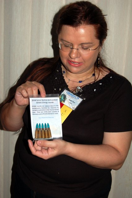 Sarah Hoyt shows off her delivery.